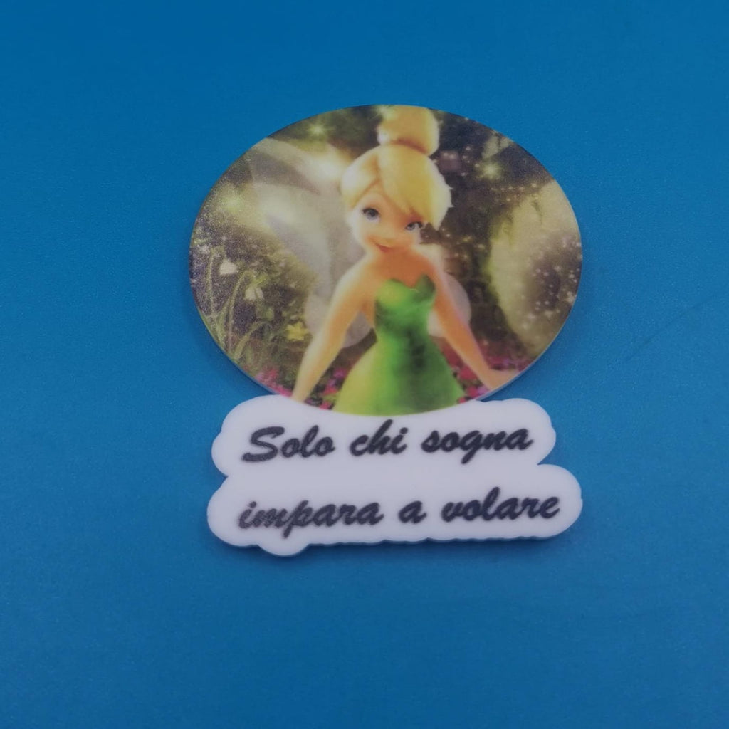 Elegante calamita o portachiavi in plexiglass di alta qualità, personalizzabile con l'immagine della Fatina Trilli o qualsiasi altro personaggio desiderato. Realizzato con stampa UV ad alta definizione che garantisce colori brillanti e duraturi. Possibilità di aggiungere foto personali e testo per un gadget unico e distintivo, ideale come regalo o souvenir.