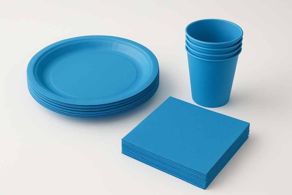 36 piatti di carta colore celeste . Diametro: 23cm