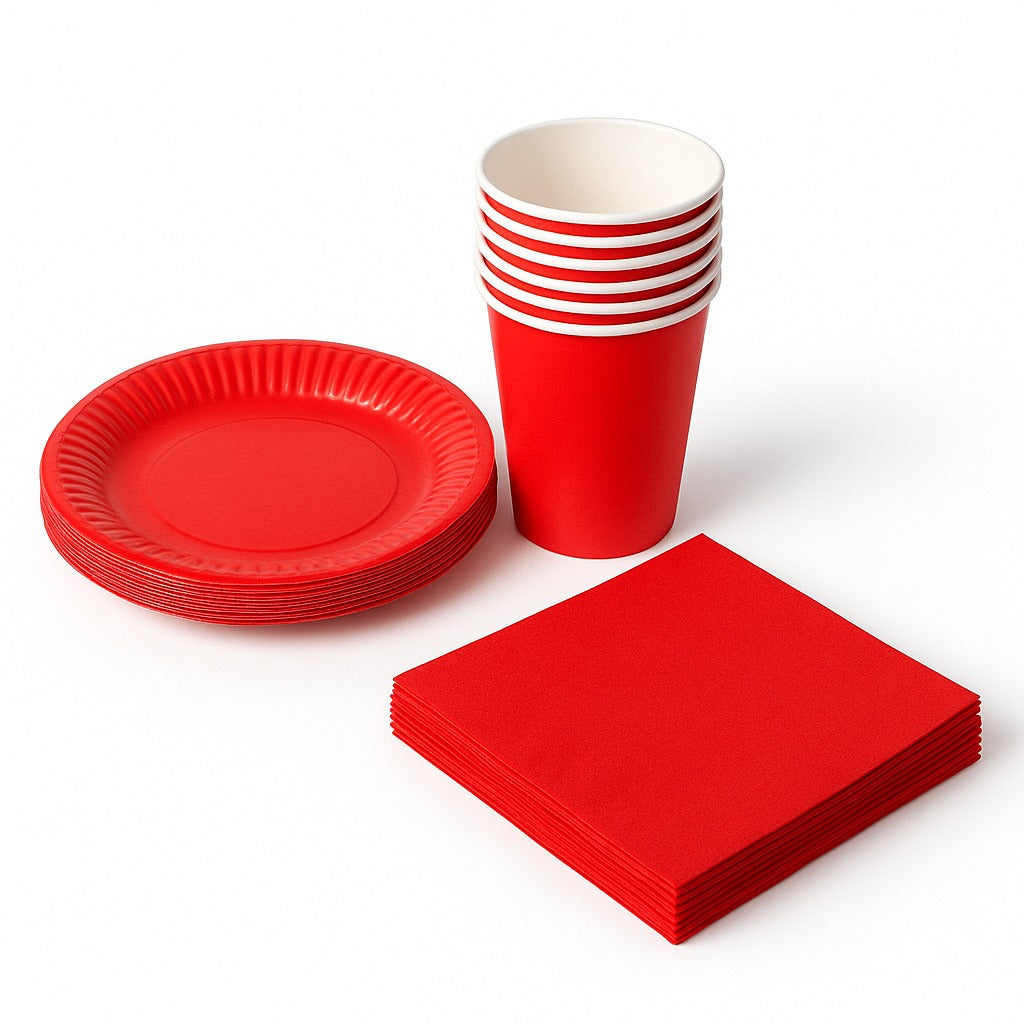 12 piatti di carta colore rosso. Diametro: 23cm