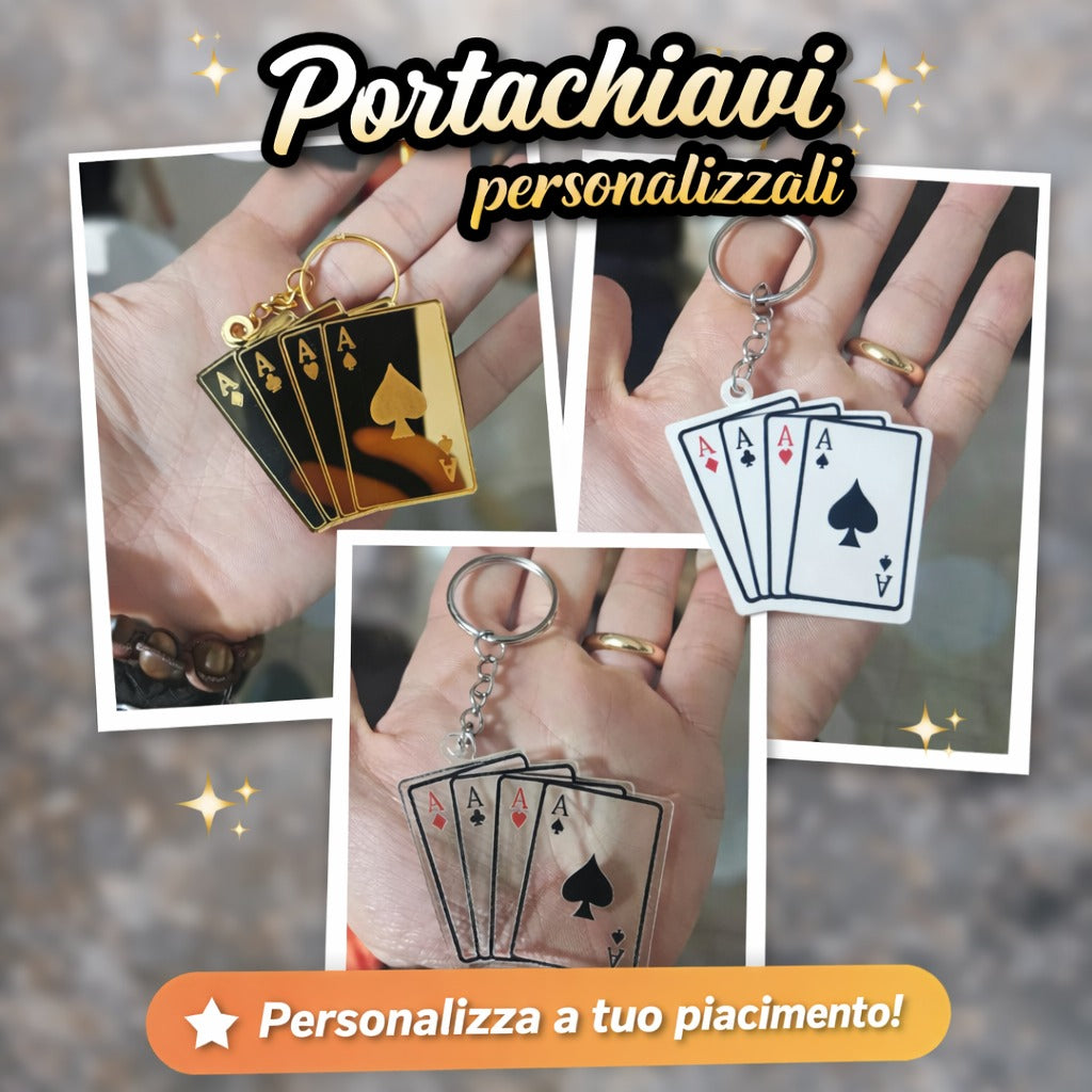 Elegante portachiavi in plexiglass di alta qualità, personalizzabile con immagine Carte Poker o qualsiasi altra immagine desiderata. Realizzato con stampa UV ad alta definizione che garantisce colori brillanti e duraturi. Possibilità di aggiungere foto personali e testo per un gadget unico e distintivo, ideale come regalo o souvenir.