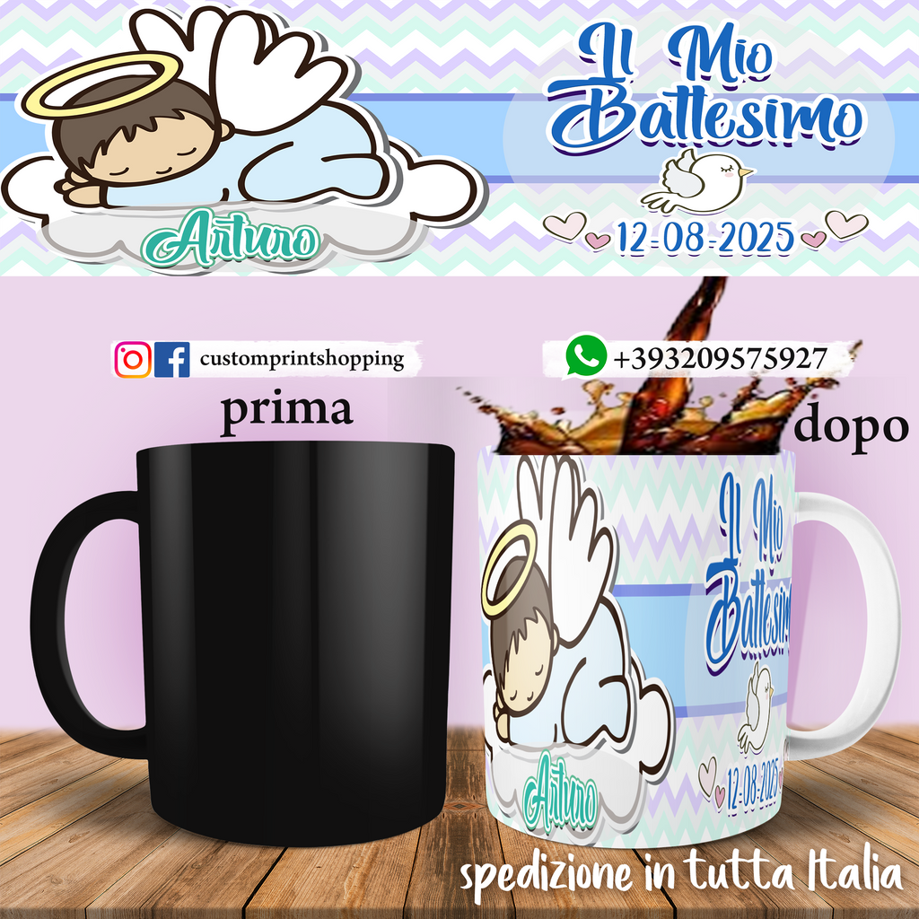 TAZZA BATTESIMO PERSONALIZZATA CON NOME E DATA MOD.2
