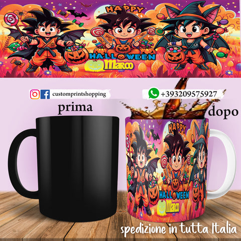 TAZZA HALLOWEEN CARICATURA GOKU 2 PERSONALIZZABILE CON NOME