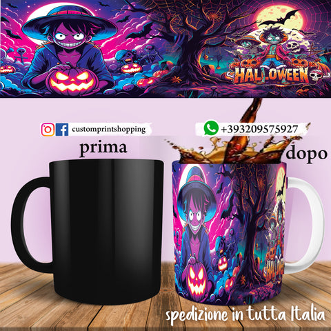 TAZZA HALLOWEEN CARICATURA LUFFY PERSONALIZZABILE CON NOME