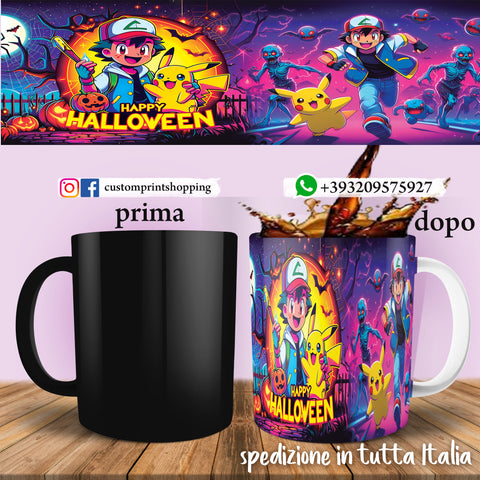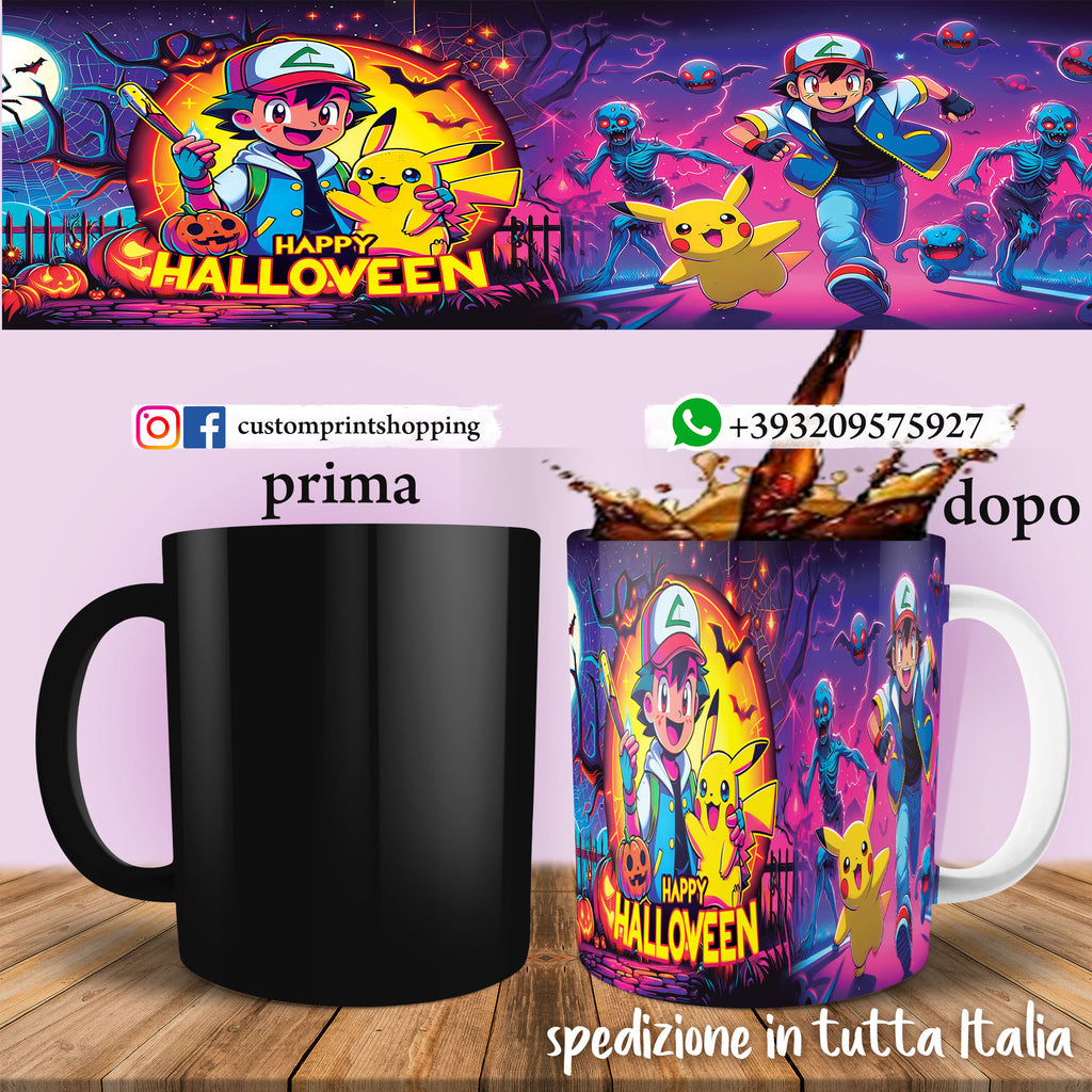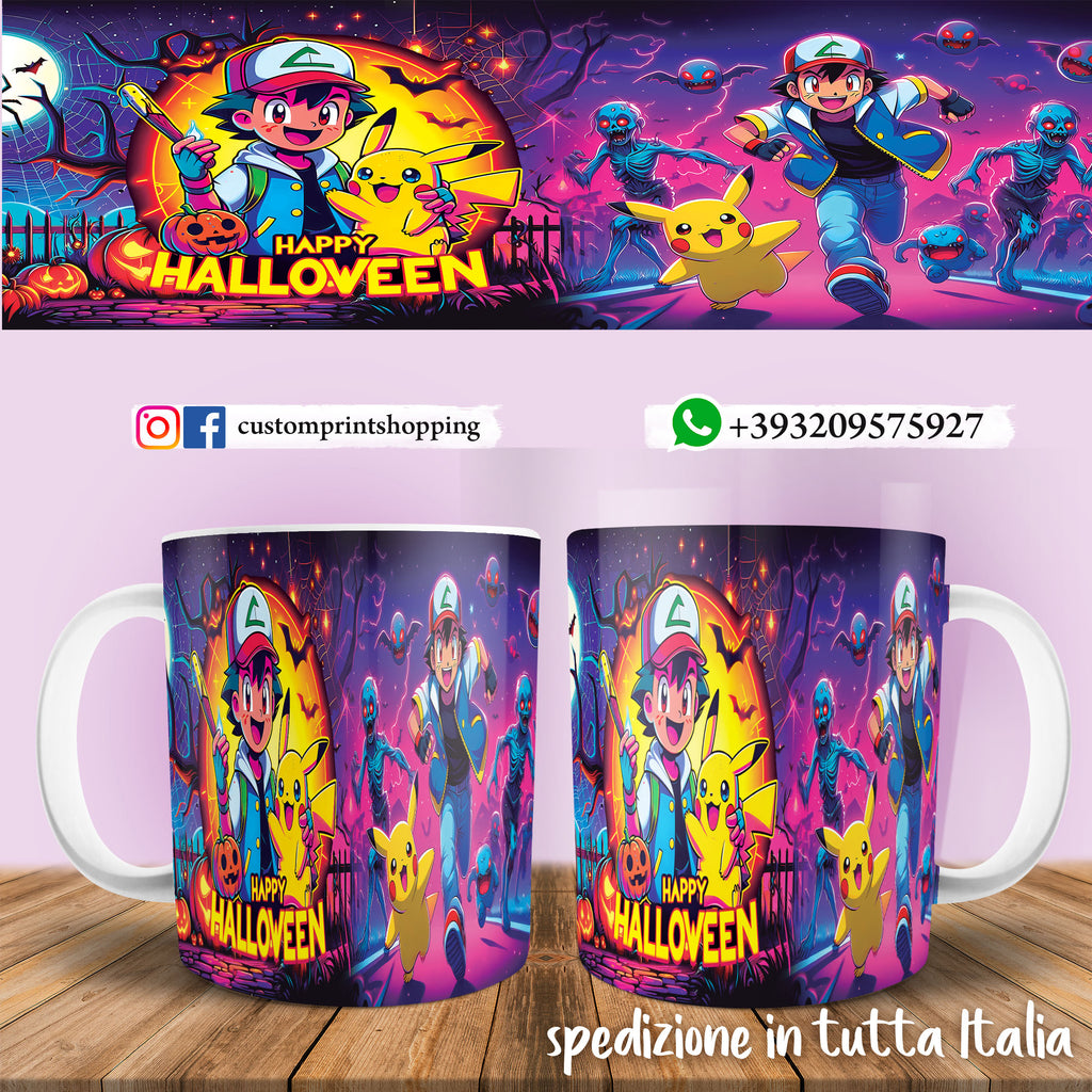 TAZZA HALLOWEEN CARICATURA PIKACHU PERSONALIZZABILE CON NOME