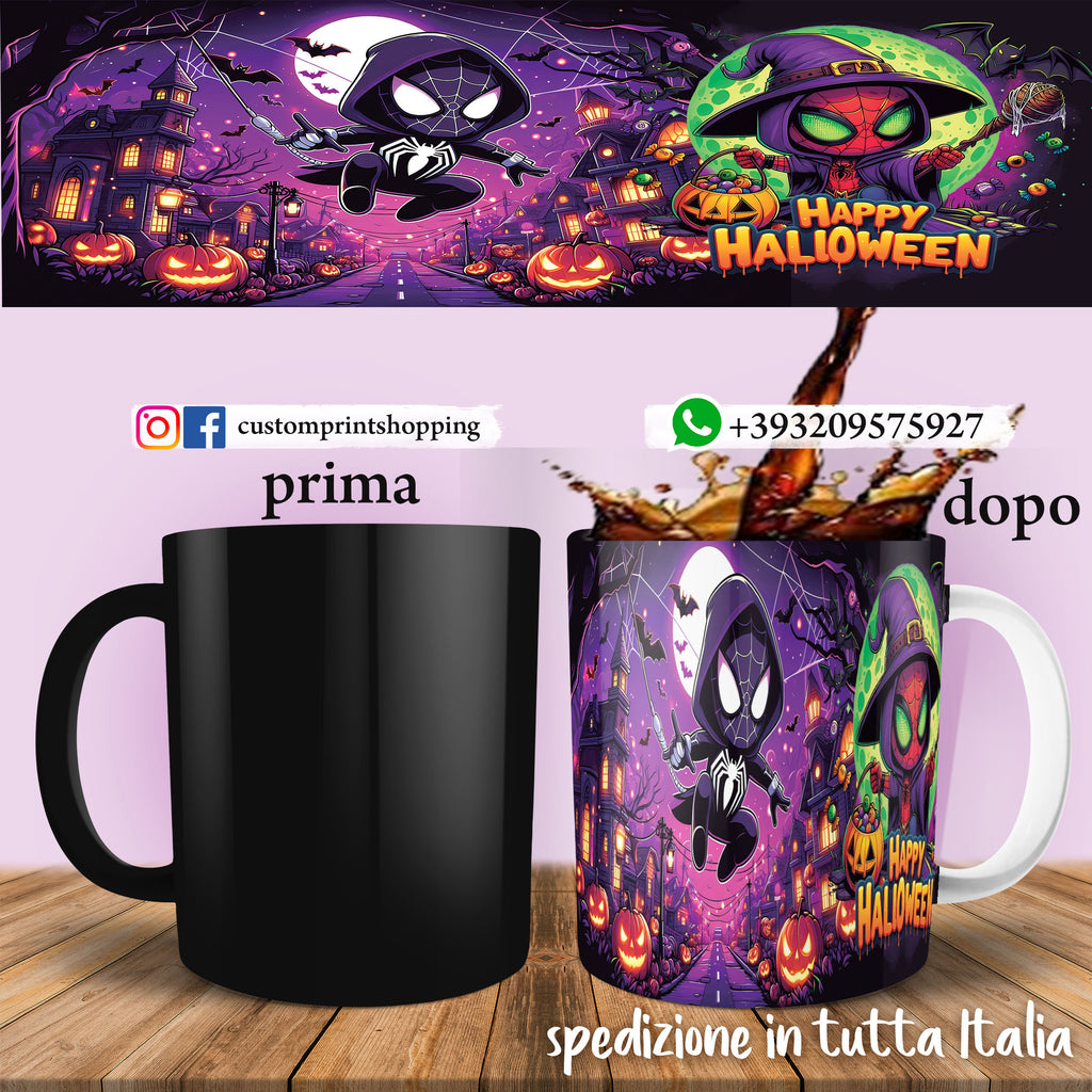 TAZZA HALLOWEEN CARICATURA SPIDERMAN PERSONALIZZABILE CON NOME
