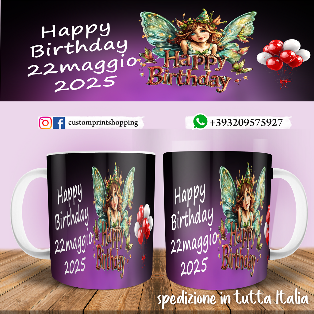 Tazza Happy Birthday Angioletto Personalizzata con data
