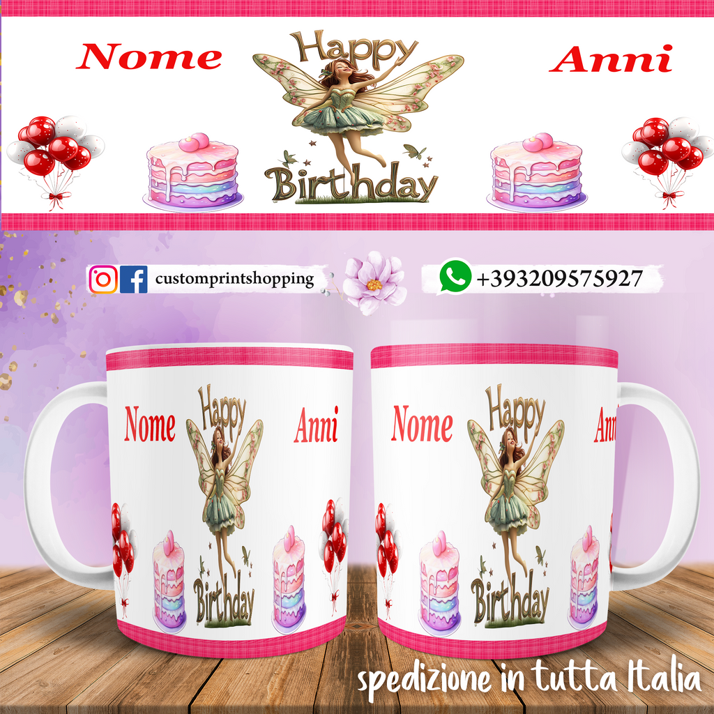 Tazza Happy Birthday Personalizzata con nome ed anni. mod.6