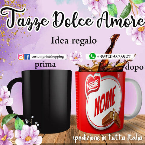 Descrizione: Tazza in ceramica realizzata in sublimazione, con stampa Full Over, resistente al microonde e ai lavaggi in lavastoviglie, con pratico manico che ne facilita la presa. Possibilità di personalizzazione. Capacità 325 ml. La tazza magica rivela l'immagine versando un liquido caldo, caffè, latte, cappuccino etc. Questa Tazza magica è perfetta per la cioccolata calda dei bambini: penseranno che hai i super poteri!