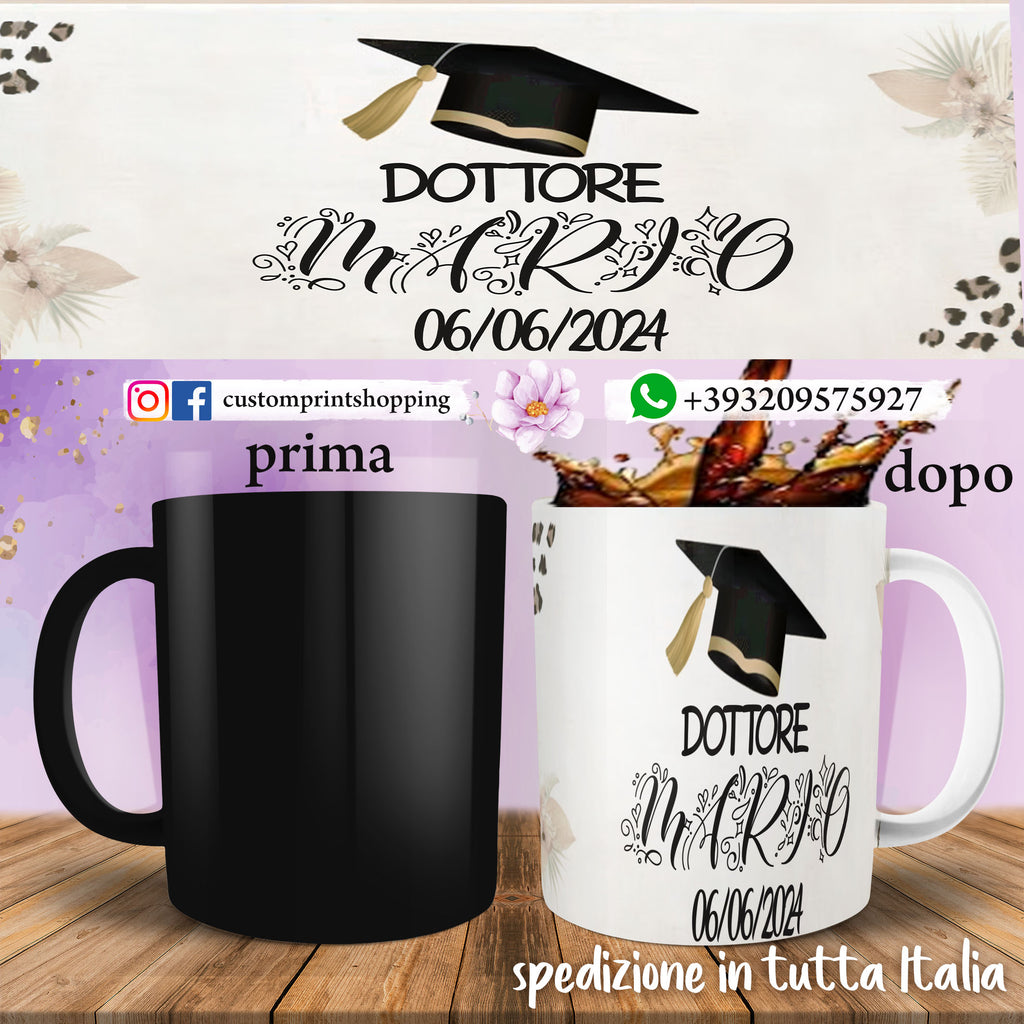 Festeggia ogni traguardo con stile e unicità! La nostra tazza personalizzata per laurea  è il regalo perfetto per commemorare questi momenti speciali. Realizzata in ceramica di alta qualità, questa tazza bianca magica con interno colorato sorprende ad ogni sorso.