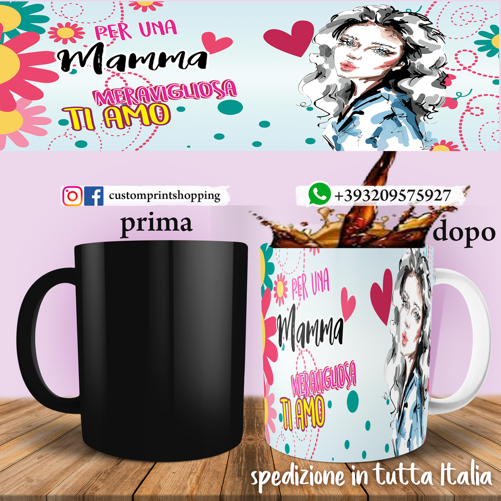 Questa tazza personalizzata rappresenta l'amore per una madre.  incisa sulla tazza, offre un tocco unico e speciale per mostrare il vostro affetto. È il regalo perfetto per celebrare la figura materna per ogni occasione. La tazza magica rivela l'immagine versando un liquido caldo, caffè, latte, cappuccino ecc. Molteplici usi: utilizzabile per bere qualsiasi bevanda ,, oppure come fermacarte; anche utilizzato per riporre penne e oggetti, oppure fantastico da collezionare o da tenere in esposizione. Perfetto per una colazione speciale e per un regalo originale. .Stampata e confezionata in Italia . WhatsApp: 3209575927