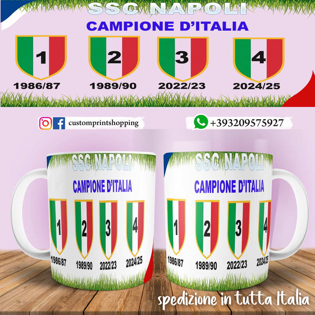 La tazza personalizzata del Napoli campione club di calcio Serie A,speciale per i fan del Napoli.