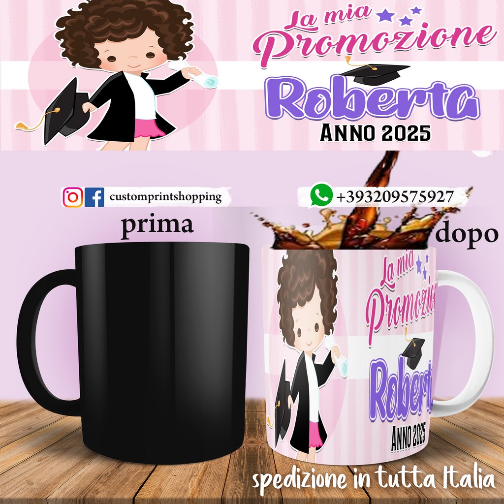 Celebra la festa della promozione con questa tazza personalizzata. Aggiungi il nome e anno per un regalo unico e significativo che ogni giorno ricorderà il tuo impegno e la tua dedizione. Un modo semplice e originale per dire grazie con stile e affetto.