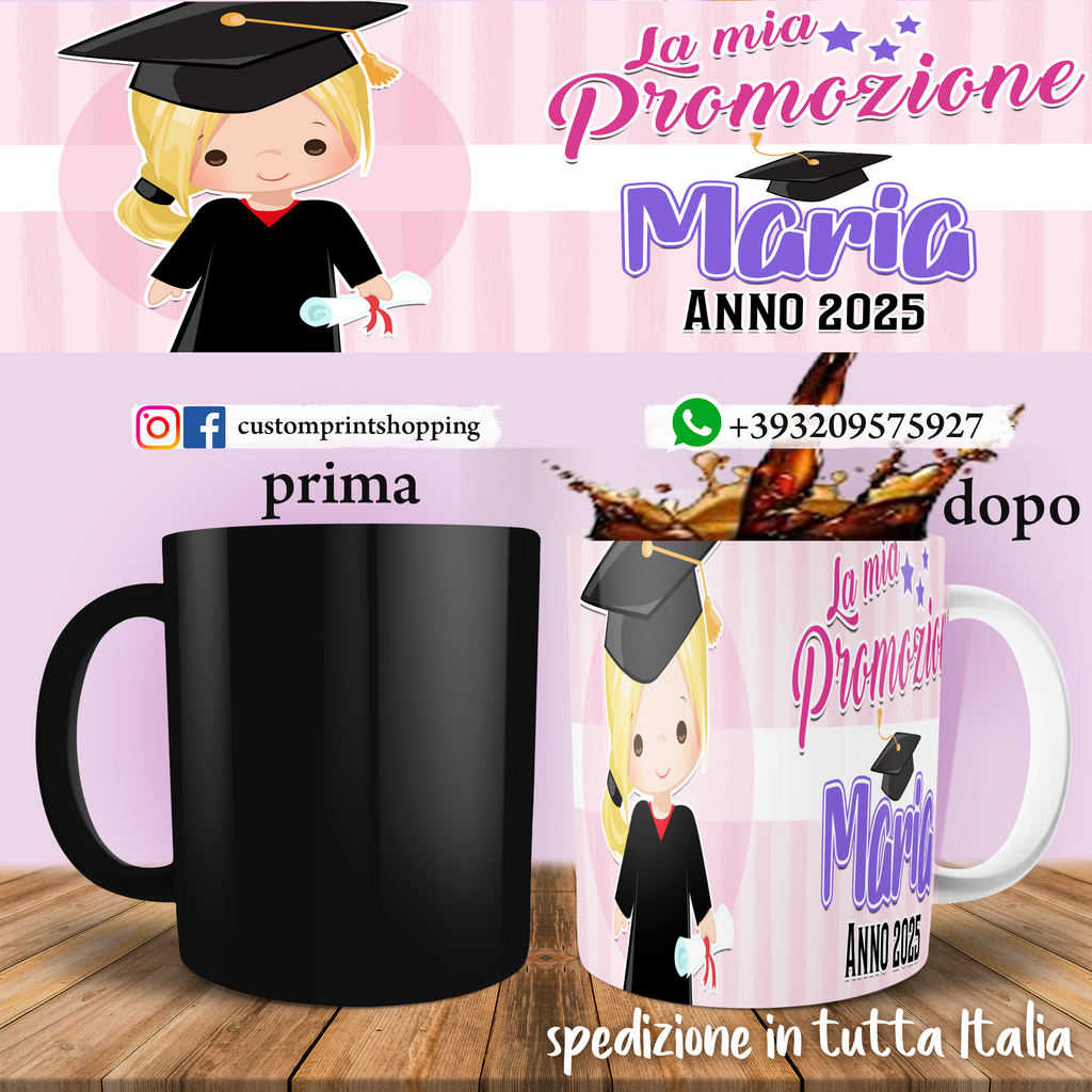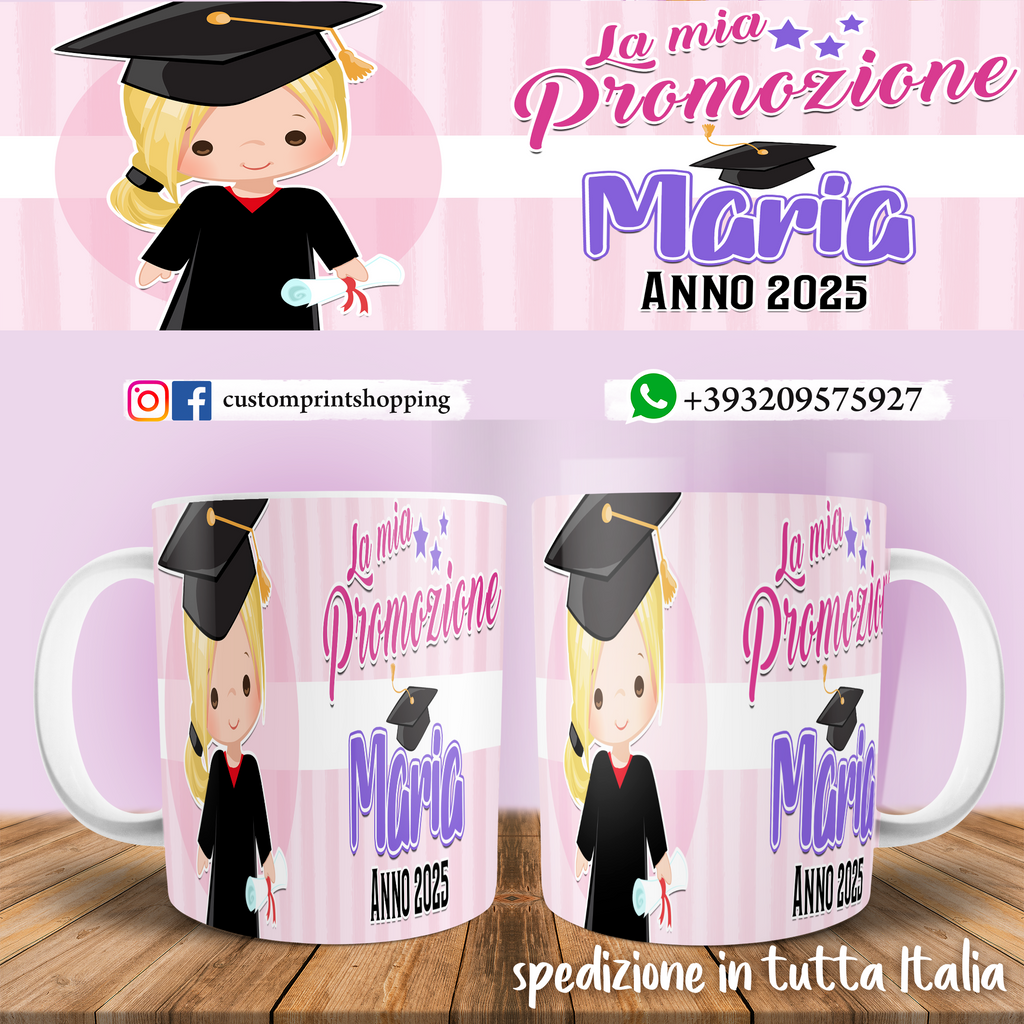 Celebra la festa della promozione con questa tazza personalizzata. Aggiungi il nome e anno per un regalo unico e significativo che ogni giorno ricorderà il tuo impegno e la tua dedizione. Un modo semplice e originale per dire grazie con stile e affetto.