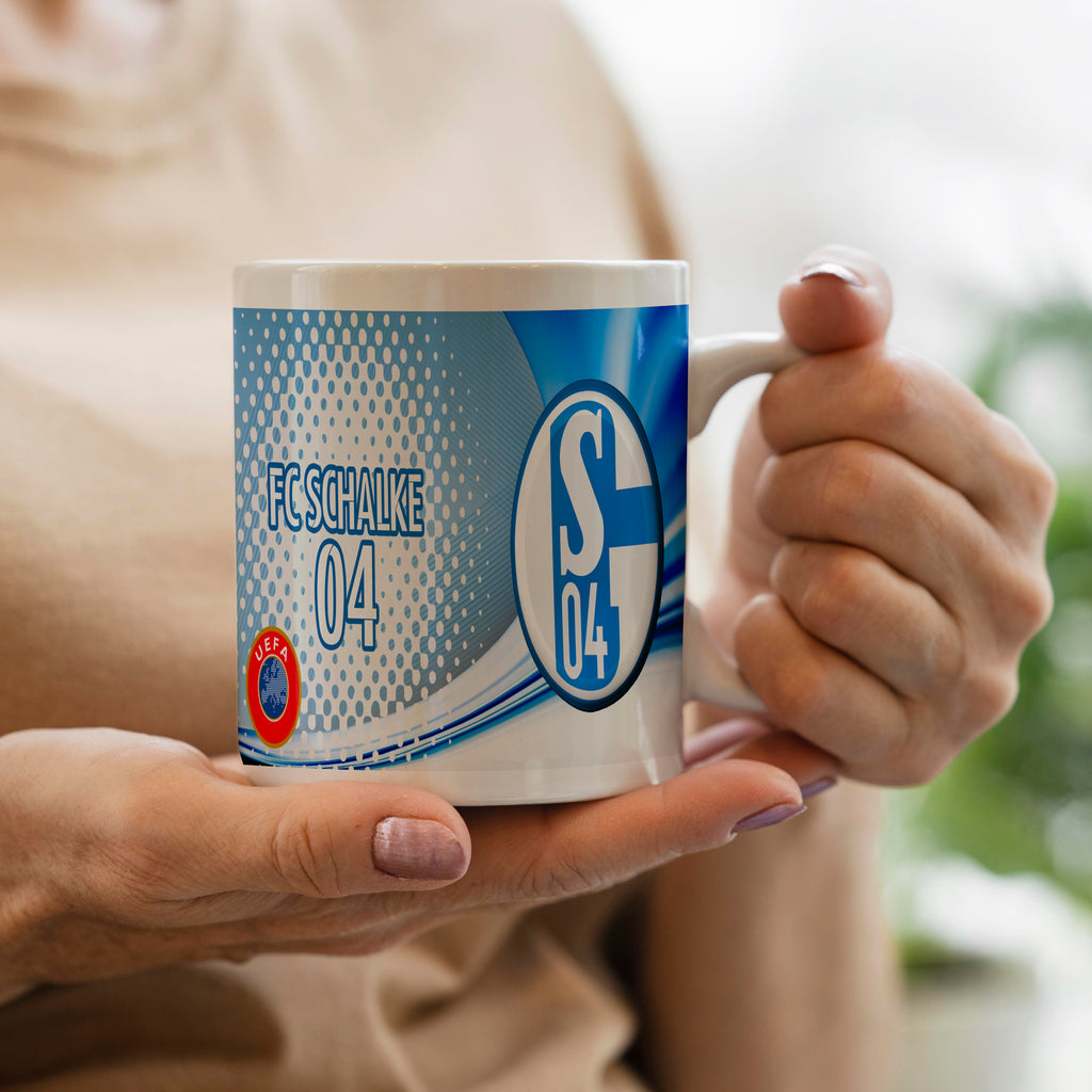 Questa tazza personalizzabile è perfetta per gli appassionati del calcio e del team Schalke 04. Con il logo del Schalke 04 e una grafica sportiva, mostra il tuo supporto nella maniera più elegante e unica. Ideale per un regalo o per il tuo uso quotidiano.